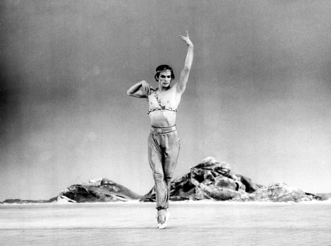 The pas de deux from Le Corsaire, an extract from the ballet by Marius Petipa, created in Saint Petersburg in 1899, based on a poem by Byron, was one of Rudolf ’s first successes, and was a realization for him. For the national ballet school contest in Moscow, in 1958, the young Nureyev, 20 years old and at the end of his third year in the Kirov Ballet School, presented three variations. He received a standing ovation for the variation from Le Corsaire. It was filmed and these few images, however old, give a powerful sense of this moment of enthusiasm. ( Copyright vidéo © British Home Entertainment )